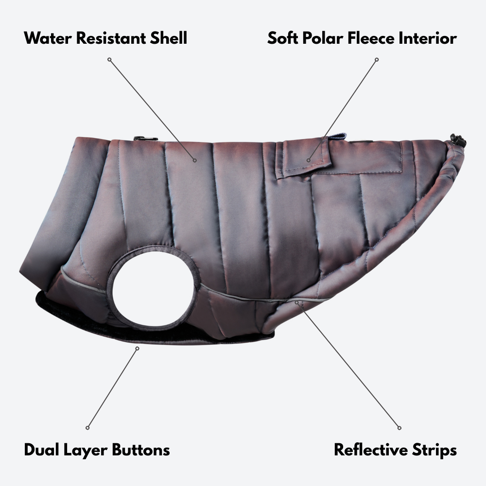 Added insulation and Interior polar fleece lining to keep your dog warm during cold winter days